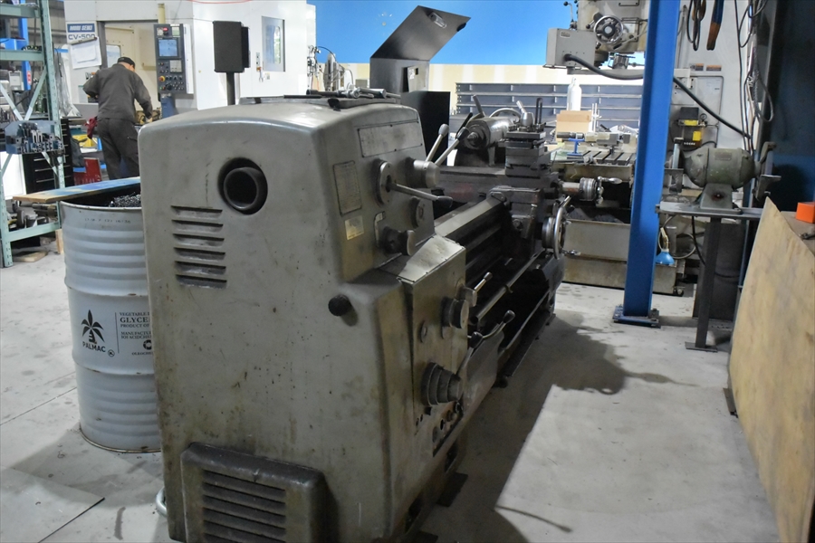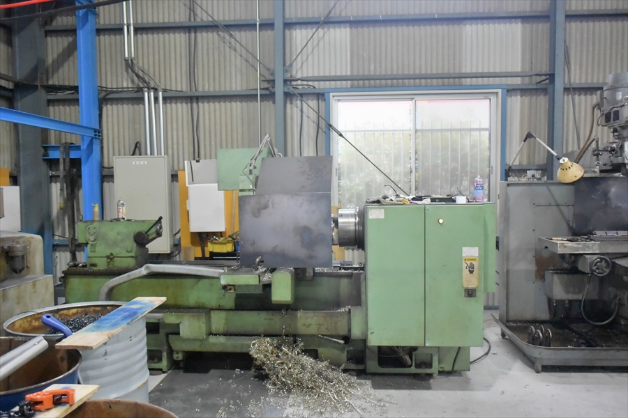 回転する素材にカモノを当て、これを送りながら切削する加工(旋削加工)を行う最も基本的な工作機械。円筒削り(外丸削り)、中ぐり、端面削り(正面削り)、ねじ切り、テーパ削りなど多くの回転円の加工ができます。